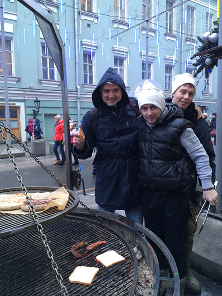 За время своего путешествия в Санкт-Петербург и Москву Филиппос делал почти 4000 снимков. Верный своему Никону, он с любопытством, впервые в жизни, взял в руки мой Кенон, чтобы сделать снимки во время встречи Нового года на Красной площади (не хотелось рисковать его дорогой профессиональной аппаратурой). И Кенон в руках профессионала не подвел! Так что друзья и родственники, наблюдавшие за путешествием Филиппоса из Греции по публикациям в соцсетях, могут успокоиться: ничего с его Никоном не случилось – просто с Кеноном было гораздо удобнее, а фотографии получались превосходные даже в ночное время.