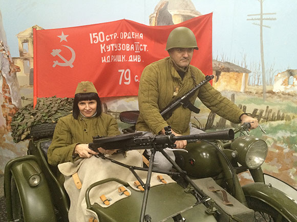 Посещение Музея Великой отечественной войны на Поклонной горе стало для Филиппоса настоящим праздником – там мы провели почти весь день, путешествуя из зала в зал, от одной панорамы битвы – к другой. А в конце переоделись в военную форму, чтобы сделать фото на память.