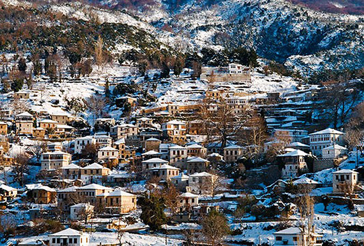 Пелион является одним из самых популярных зимних направлений в Греции! 24 деревень с домиками уникальной красотой, богатой природной средой, с видом на залив Пагостикос, сочетание гор и моря и лыжного центра сделают ваше пребывание в Пелионе запоминающимся! Зима, безусловно, время, которое ему подходит, потому что он красив в белом! Не забудьте посетить знаменитые ципурадика и насладиться ципуро с