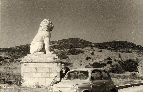 С тех пор местность изменилась настолько, что Апостолос с трудом находит нужный поворот, который приводит нас к изрядно почерневшему от времени Белому льву. Теперь основная дорога проходит немного в стороне, и памятник прячется в укромном местечке, оттененном высокими соснами.