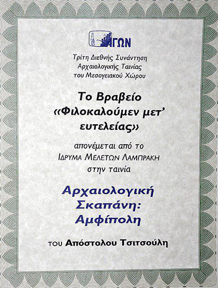 Спустя годы Апостолос вернется сюда в другом качестве – чтобы снять документальный фильм «Амфиполис», который в 2000 году удостоят самой высокой премии престижного международного фестиваля археологических фильмов ΑΓΩΝ (Агон).