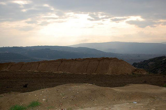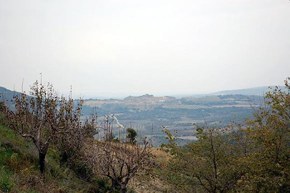 Никакое 3D моделирование не передает, как местность выглядит в реальности – вокруг сплошные холмы, между которыми вьется прекрасное широкое полотно асфальтированной дороги – магистарль Эгнатия Одос. На этом фоне курган Каста никак не выделяется – есть и повыше, чем он. Да и найти его без подсказок местных жителей практически невозможно – здесь на указатели рассчитывать не приходится.