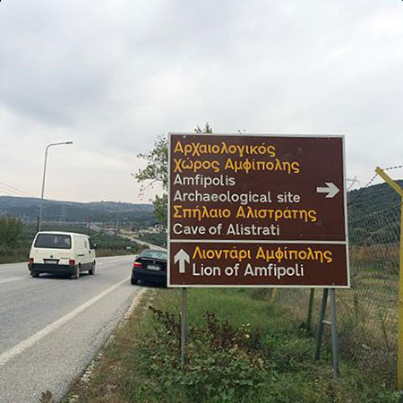 Дороги и перекрестки, ведущие к Амфиполису изобилуют коричневыми указателями, что говорит о множестве археологических мест.