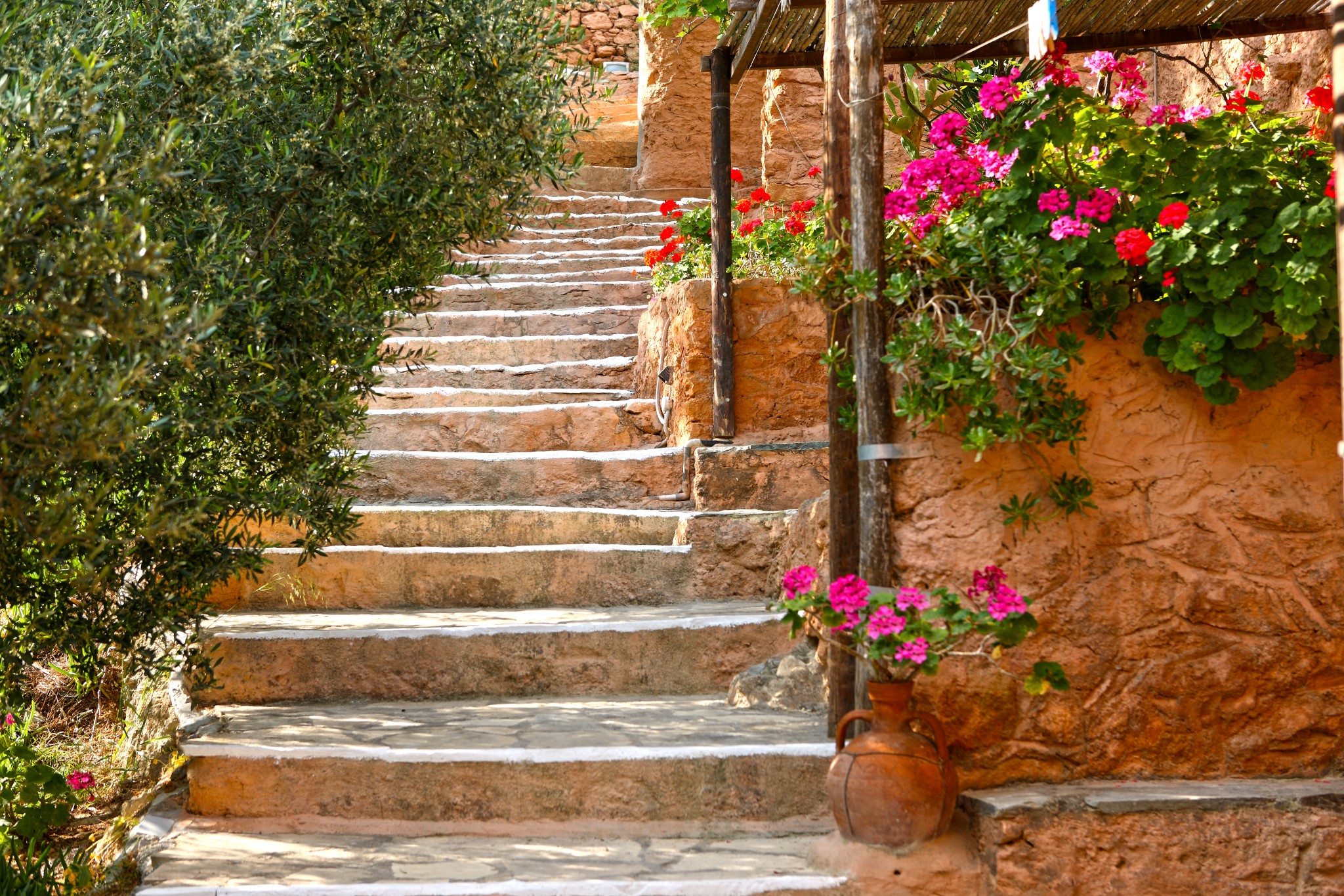 Мощеная дорога, которую украшают виноградники, оливки и цветы, соединяющая 10 домов, производит неизгладимое впечатление на посетителей, которые остаются в традиционной деревне южной части Крита.