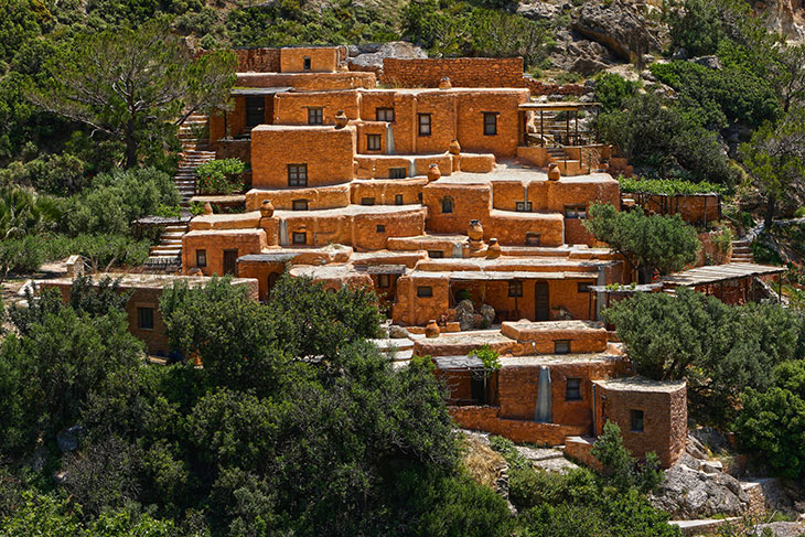 Полагая, что красота заключается в простоте, а не в излишествах, с уважением относясь к окружающей среде, владельцы жилого комплекса на юго-востоке Крита восстановили деревню, превратив её в полностью экологическое направление этого региона.