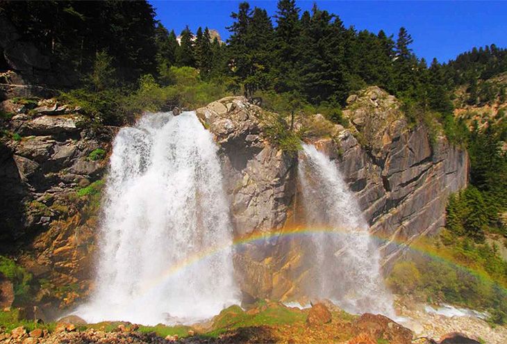 Захватывающий дух водопад в деревне Теодориана, расположенной в горном хребте Цумерка на северо-западе Греции, выглядит как пейзаж из сказки.