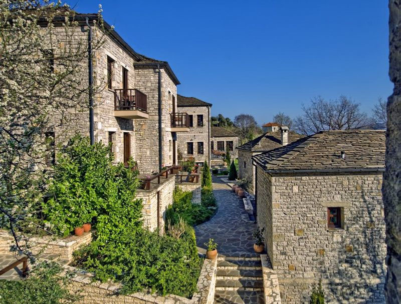 Каменные дома и особняки, мощеные улицы составляют образ Аристи, красивой деревни с отличным видом на природный рельеф.