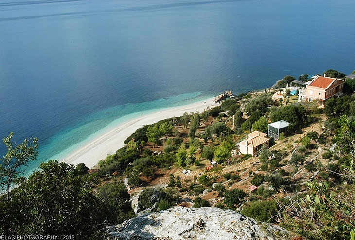 Самый северный пляж острова для многих является самым впечатляющим. Это один из немногих пляжей с белым и мелким песком, который вместе с прозрачной голубой водой делает его похожим на Сейшельские острова. Сюда нельзя добраться по суше, а только на лодке или пароме из Фрикеса или Киони. Он не организован и в нем мало естественной тени, поэтому было бы неплохо взять с собой зонтик и питьевую воду. Учтите, что здесь бывают регулярные камнепады, и купальщикам следует быть особенно осторожными.