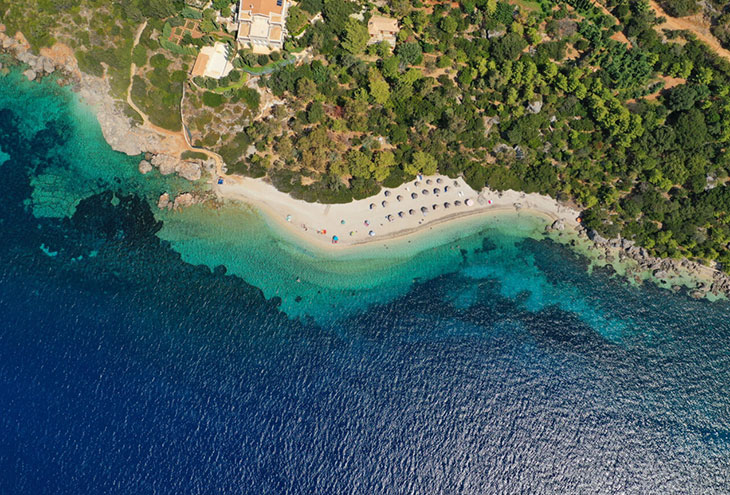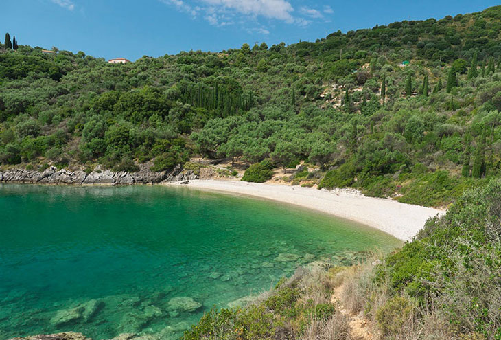 Этот длинный пляж имеет кристально чистую бирюзовую воду, напоминающую Карибское море, и сосны, которые почти касаются воды. Многие по праву называют его лучшим пляжем Итаки. Дороги к пляжу нет, и вариантов, как добраться сюда, два: либо на лодке из порта Итаки, либо на машине до пляжа Скинос и потом по относительно легкому получасовому пути через сосны.