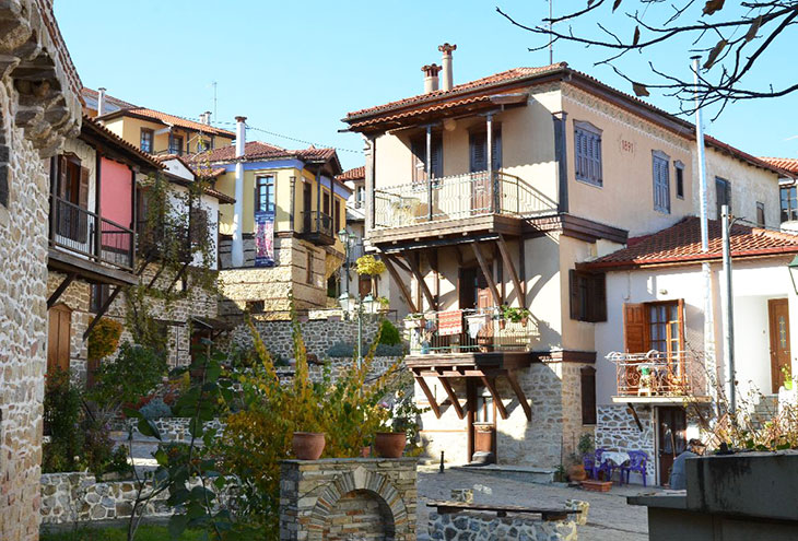 Новизна вкупе с полихромным оформлением поселка великолепно сочетается с осенним пейзажем региона. Аркохори расположена в центре горного хребта Вермион, который природа щедро наградила пышными смешанными лесами. К концу года эти леса сбрасывают свое зеленое одеяние, однако цвет обновки у них далеко не идентичен и варьируется от золотых до темно-бордовых оттенков.