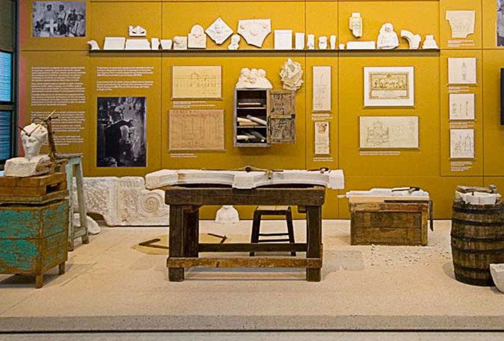 Постоянная выставка, в которой подробно и живо описывается сложное сочетание инструментов и техник, используемых при обработке мрамора, делает акцент на до- и протоиндустриальном Тиносе, самом важном центре мраморных ремесел в современной Греции. Параллельно в нем подчеркивается социальный и экономический контекст, в котором развивались местные мастерские.