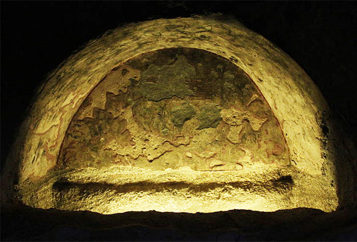 В 1927 году греческий историк Георгиос Сотириу обнаружил в катакомбах изображение символа рыбы, раннехристианского секретного символа, происходящего от греческого слова ΙΧΘΥΣ (рыба), образующего аббревиатуру «Иисус Христос, Сын Божий, Спаситель».