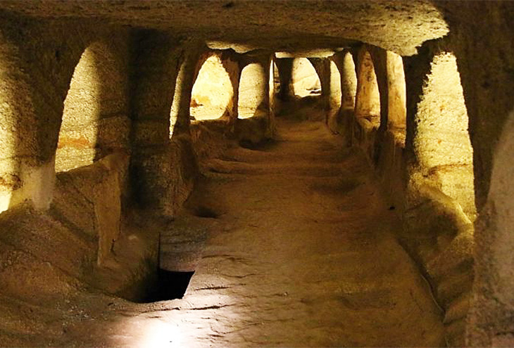 Катакомбы представляют собой подземную сеть с тремя камерами, пятью коридорами и погребальной камерой. Длина сети составляет 184 метра, высота коридоров достигает 2,5 метра, а ширина колеблется от 80 сантиметров до 5 метров. По всей территории с галереями и пещерами расположены резные арки высотой 1,66 метра, внутри которых находятся погребальные камеры, выкопанные в скале.