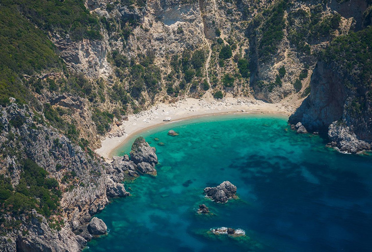 Это место не для любителей широченных пляжей. Береговой линии здесь практически нет – море плещется прямо у основания скал, и лишь изредка Логас предлагает пляжные «островки», которые, тем не менее,
