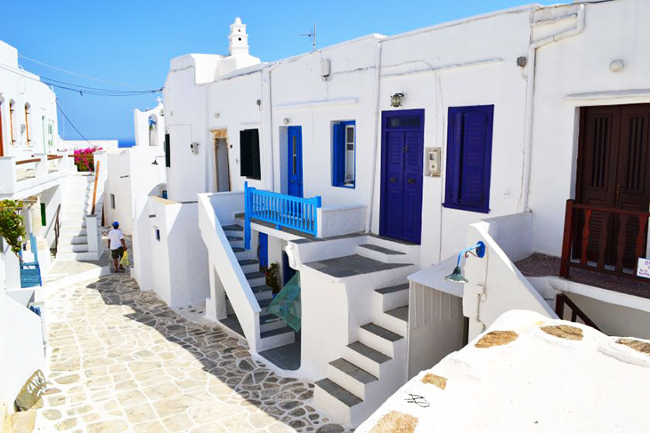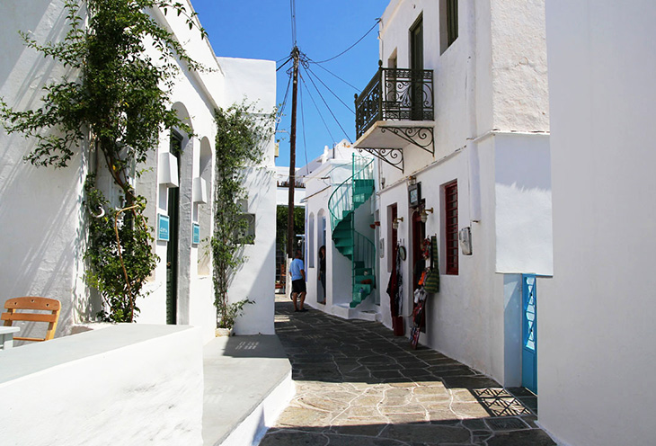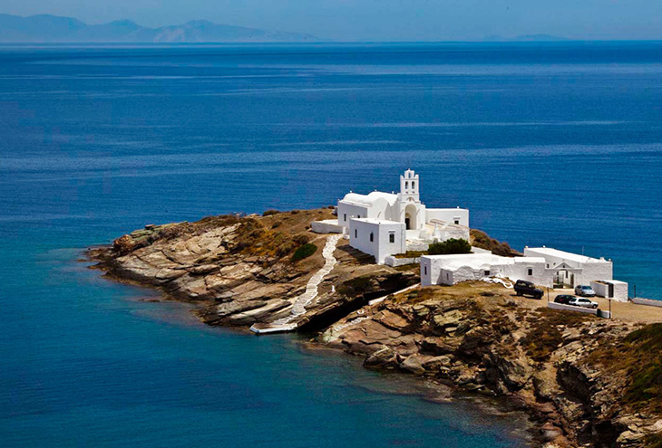 Сифнос богат на пляжи, однако близ островной столицы вы их не найдете. В то же время посетить Аполонию нужно всенепременно. Архитектура города является классическим примером кикладского зодчества – невысокие белоснежные здания, голубые купала церквей и украшенные бугенвилиями узкие улочки, которые, располагаясь на разных уровнях, временами соединяются между собой не только мощеными камнем дорогами, но и лесенками.