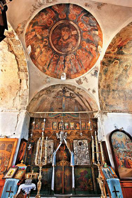 Церковь крестообразная с куполом, переходного типа, датируется 9-10-м веком. Внутренние поверхности покрывают византийские фрески.