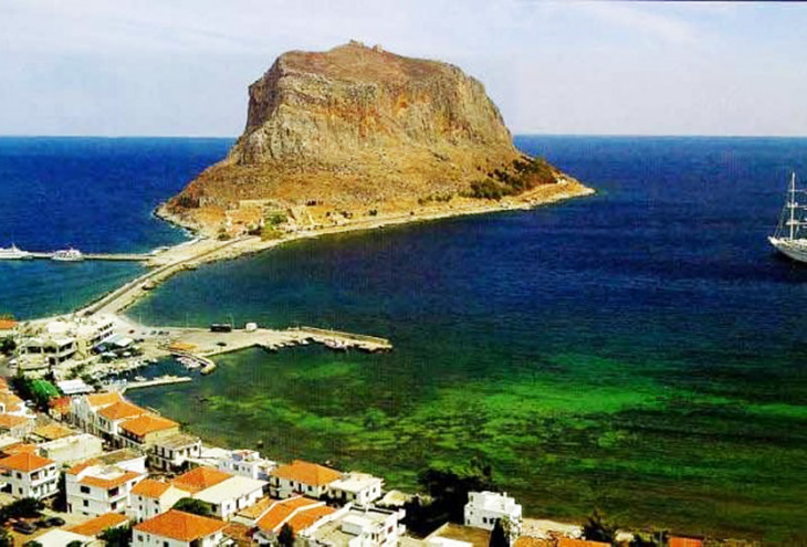 Большая часть скального острова состоит из большого плато, возвышающегося на высоте около 100 метров над уровнем моря. Очаровательный город Монемвасия с видом на залив Палая состоит из узких извилистых улочек, по которым можно передвигаться только пешком или на осликах.