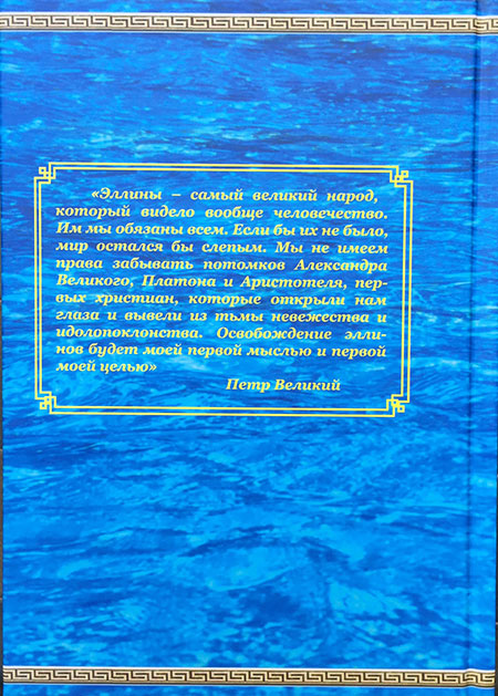 Эллада вписала себя в мировую историю золотыми буквами, и поэтом название книги выполнено в золоте на фоне «самого синего в мире» прекрасного Греческого моря.