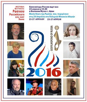 В рамках перекрёстного 2016 года России и Греции Генеральный директор Госфильмофонда России Николай Бородачев и Ксенофонт Ламбракис - президент Hellenic- EuroAsiatic Alliance проводят в Греции Фестиваль Российского Кино с 23 по 27 апреля.