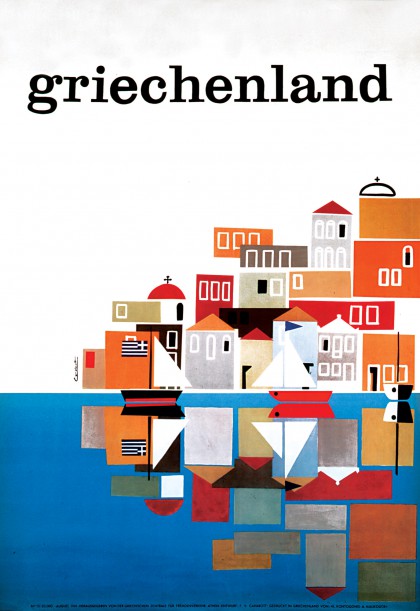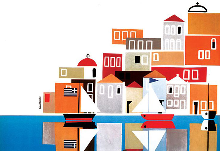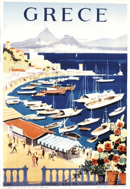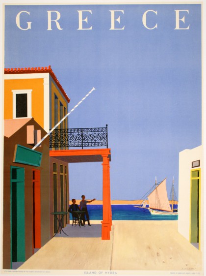 Яннис Моралис в 1949 году задумывает плакат с домами на острове Идра, столиками кафе и подходящими к берегу кораблями, перемещая тем самым интерес от археологической темы к красоте острова, пейзажу и очарованию повседневной жизни.