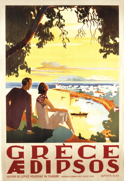 Первыми туристическими плакатами можно назвать работы Константиноса Малеоса, но на самом деле греческая туристическая реклама начинается после национальных событий 1940-1949 годов.