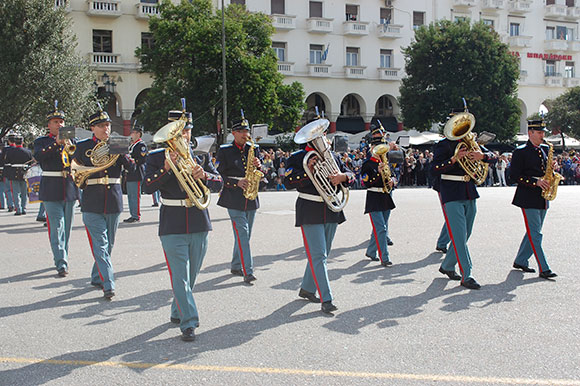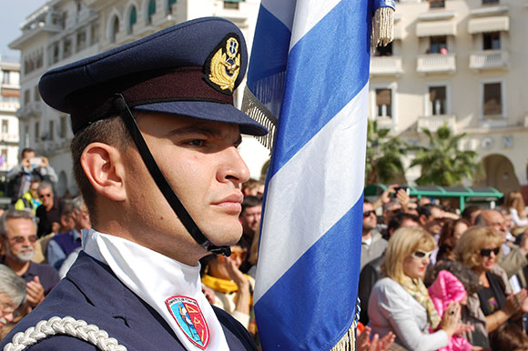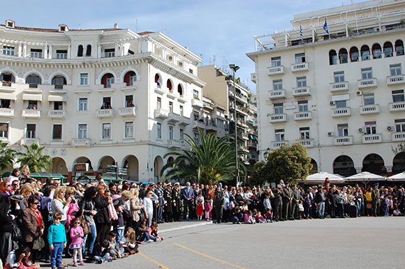 На этот раз улицы праздничных Салоник были залиты лучами почти что летнего солнца, небо рвали на части стремительные птицы-истребители, заставлявшие запрокидывать голову и улыбаться, где-то уже звучала музыка, где-то еще не отзвонили колокола… Казалось, что большая часть горожан собралась в районе Храма Святого Димитрия Солунского, покровителя Салоник, чтобы в день его памяти быть причастным к великому празднику, который считается Днём города.