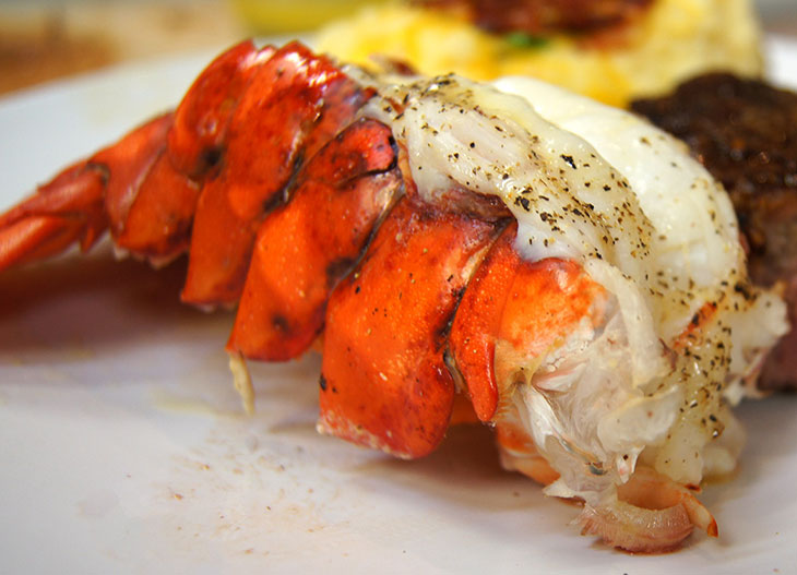 Разрезанного по центру в длину лобстера поместить на гриль. Жарить 10-12 минут. Во время жарки несколько раз обмазать лобстера маслом. В миску положить тертые сухари, сыр, лук, соль и перец и все перемешать. Полученную массу положить на лобстера и оставить в духовом шкафу еще на 5 минут. По желанию при употреблении полить лимонным соком.