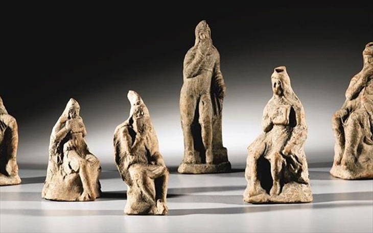 Шесть глиняных статуэток идолов