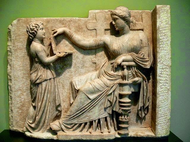Греческая скульптура, рельеф 1 века до н.э., взбудоражила исследователей «тайны», поскольку они считают, что женщина смотрит на экран ... ноутбука!