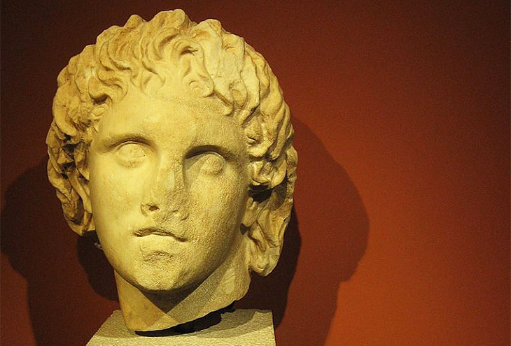 Среди экспонатов - знаменитые мозаичные полы из святилищ Пеллы, мраморная голова, которая считается портретом Александра Великого, и терракотовая статуэтка Афродиты, снимающей сандалии.