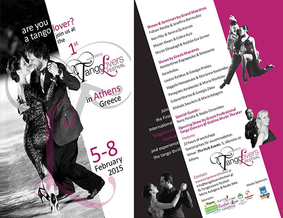 Возможно, впервые в Греции с размахом организован аргентинский танго-фестиваль. Уважаемые члены греческого танго-сообщества, видные деятели международной сцены (Аргентина, Ливан, Турция, Франция) объединили свою страсть в ожидании взрывного результата!