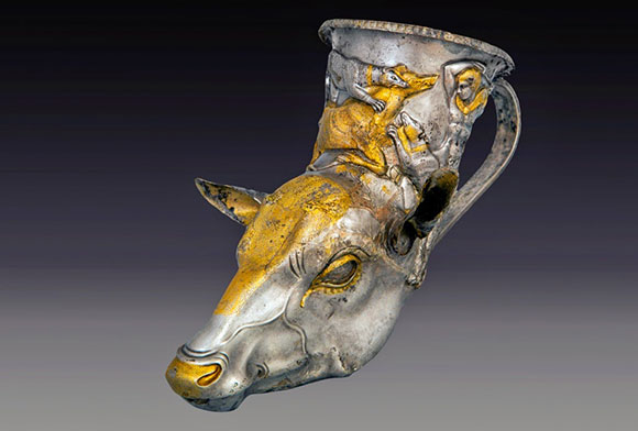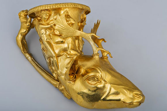 Ритон в форме головы оленя из древней фракийской сокровищницы первой половины 4-го века до нашей эры является одним из 1629 археологических экспонатов, представленных на выставке. Ритон является частью коллекции Национального музея Болгарии.