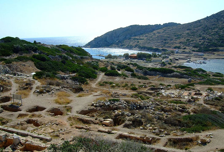С помощью дамбы канал между островом и материком был преобразован в две гавани. В этом районе, возможно, благодаря тому, что он находится далеко от крупного города, до сих пор сохранилось множество архитектурных руин и почти нетронутые городские стены. Во многих местах, особенно вокруг акрополя, в северо-восточном углу города, они замечательно сохранились.