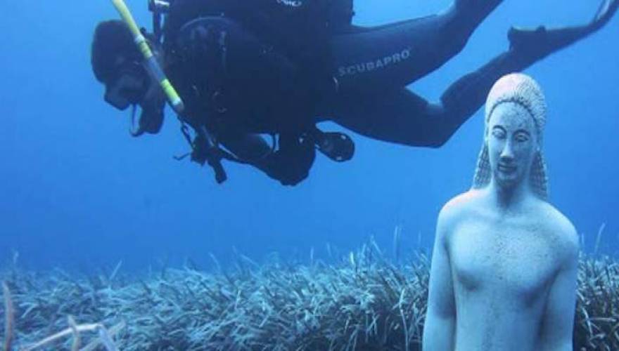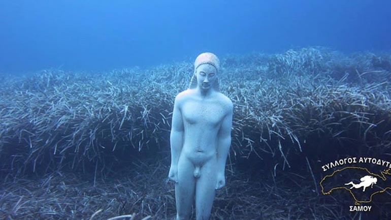 Прошел год с того дня, когда члены Ассоциации водолазов Самоса погрузили статую Куроса (тип статуи юноши-атлета) в синие воды Коккари.