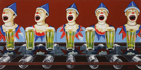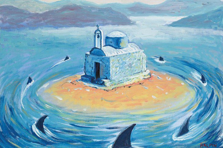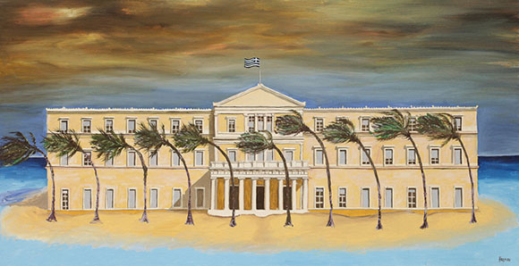 Тематика греческих картин иллюстрируют жизнь Греции в кризисный период, отражая политические аспекты и с утонченным юмором повседневную картину жизни греков.