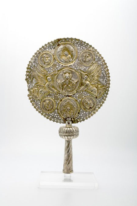 Серебряный диск с медальоном святой и шестью крылатыми ангелами, 18-й век