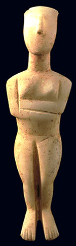 Мраморная женская фигурка со сложенными руками, относящаяся к раннему кикладском у периоду.