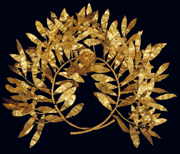 Золотой венок с несколькими лепестками цветка в его центре, 4-3 век до н. э.