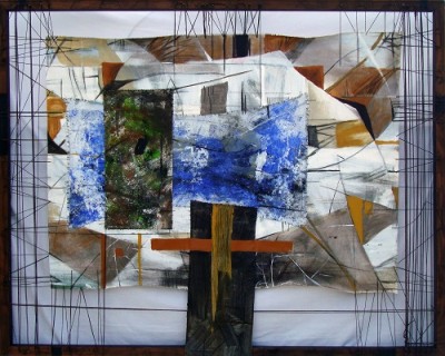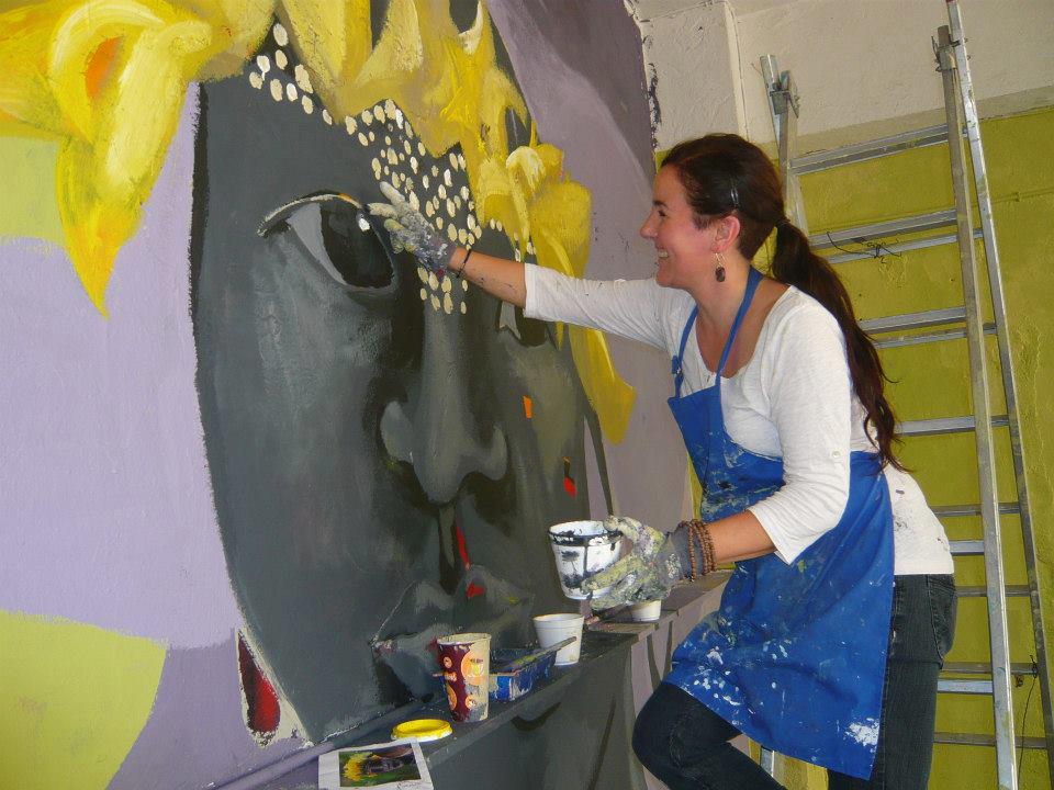 Она использует в работе различные методы, среди которых есть картина с акрилом и смешанными материалами.