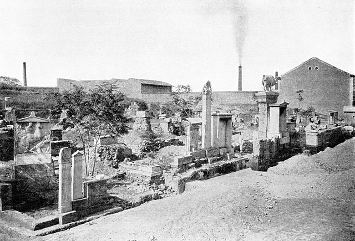 В 1862 году начались работы по строительству дороги, которая должна была идти из центра Афин в Пирей. Во время строительных работ обнаружились исторические реликвии с древними надписями. Греческое правительство, осознавая историческую и археологическую важность этих надписей, купило землю и начало раскопки спустя годы после их первоначального открытия.