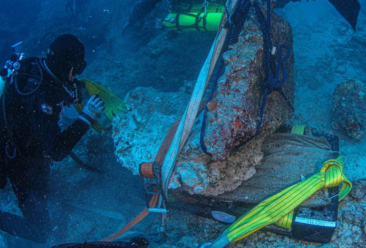 Новые находки были обнаружены после того, как массивные камни весом в несколько тонн были подняты из моря и обнажили части кораблекрушения, невидимые до сих пор.