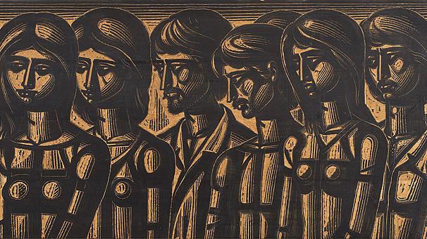 Выставка разделена на шесть секций, где сосредоточены наиболее важные и характерные работы (гравюры, эскизы, гравюры на дереве):