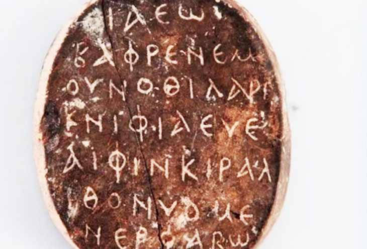 Группа польских археологов недавно обнаружила в Неа Пафосе на Кипре двусторонний амулет возрастом 1500 лет, на котором изображена палиндромная надпись на древнегреческом языке.