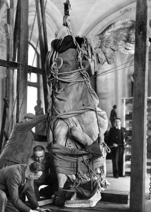 Статуя, прежде чем стать такой, как есть, трижды реставрировалась: в 1864 году, в 1880 году с добавлением крыльев, в 1933 году с установкой на корме судна, которое подходит для статуи.