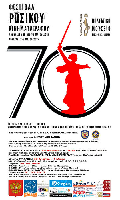 Самая большая кинокомпания и видео библиотека России «Госфильмофонд» под председательством Николая Бородачева и XL-GRoup - Hellas, президент Ксенофонт Ламбракис, организуют с 29 апреля по 1 мая фестиваль российского кино в Афинах и с 2 по 5 мая в Лутраки.