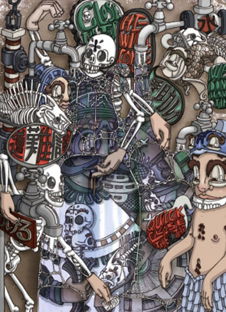 Первый гигант, который был изготовлен площадью 120 квадратных метров, называется «Close the Tap» и создан Софией Пистофиду для художественного конкурса «Вода - драгоценный товар».