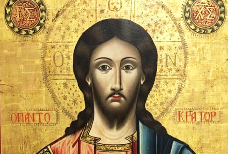На первой иконе, написанной в 1735 году, изображен Христос Вседержитель. Этот образ Христа, встречающийся на иконах, фресках и мозаиках по всему христианскому миру, является одним из самых распространенных во всем христианстве. Он также имеет одни из самых старых иконографических корней в Церкви, так как считается одним из первых изображений Христа.