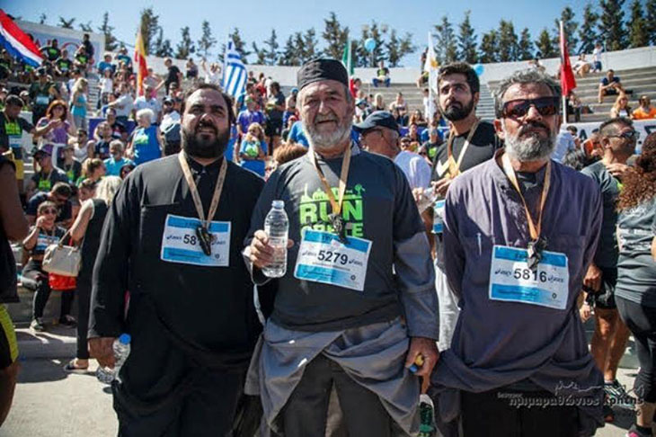 К бегунам присоединились двое священнослужителей в рясах, которые, задрав полы своих одеяний, преодолели весь кросс наравне со всеми.
