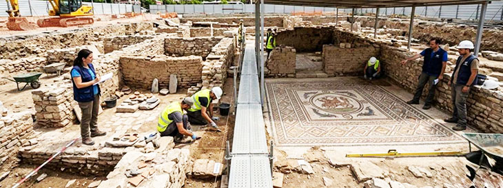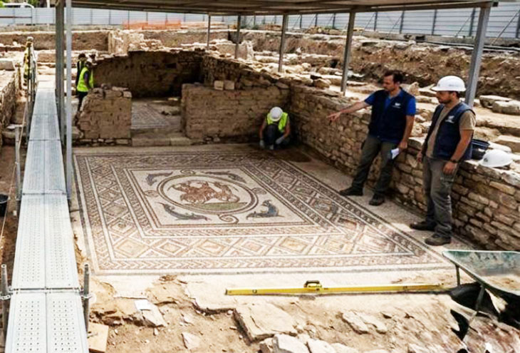 Находка включает жилые здания, мастерские и хорошо сохранившуюся мозаичную площадь.
