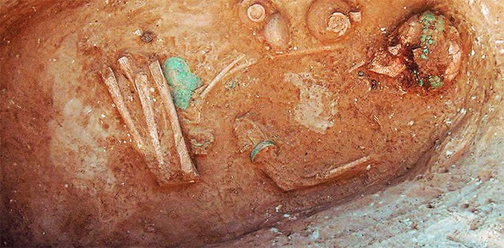 Гробница состоит из захоронения молодой женщины, скелет которой покрыт множеством украшений из драгоценных камней. Среди них редкая диадема со стеклянными шарами, полудрагоценный камень сердолик (карнеол), браслет и три бронзовых кольца. В то же время по всему периметру самой гробницы были обнаружены гончарные изделия мастеров древности.
